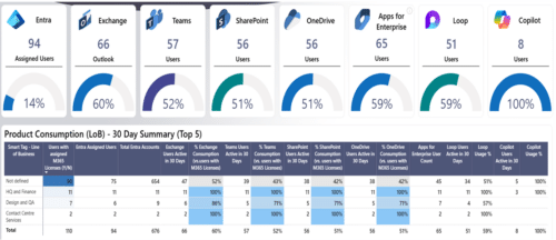 - Adoption metrics for Teams, SharePoint and OneDrive